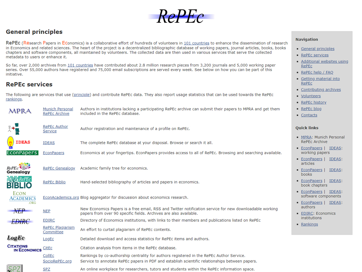 With its IDEAS database, RePEc links to more than 1.2 million full-text articles.
