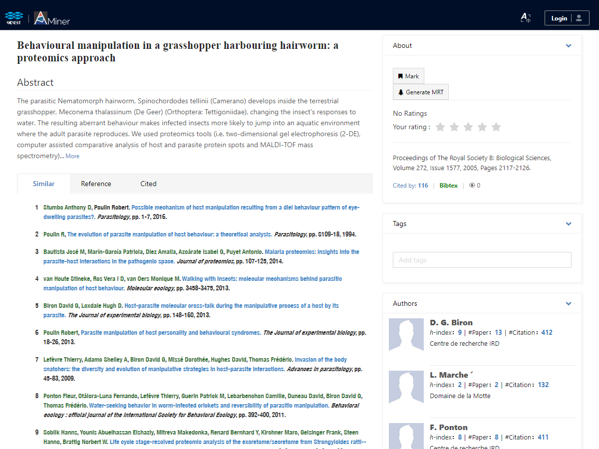 ArnetMiner (AMiner) is designed to search and perform data mining operations against academic publications on the Internet, using social network analysis to identify connections between researchers, conferences, and publications. This allows it to provide services such as expert finding, geographic search, trend analysis, reviewer recommendation, association search, course search, academic performance evaluation, and topic modeling. ArnetMiner was created as a research project in social influence analysis, social network ranking, and social network extraction. A number of peer-reviewed papers have been published arising from the development of the system. It has been in operation for more than three years and has indexed 130,000,000 researchers and more than 200 million publications. The research was funded by the Chinese National High-tech R&D Program and the National Science Foundation of China.