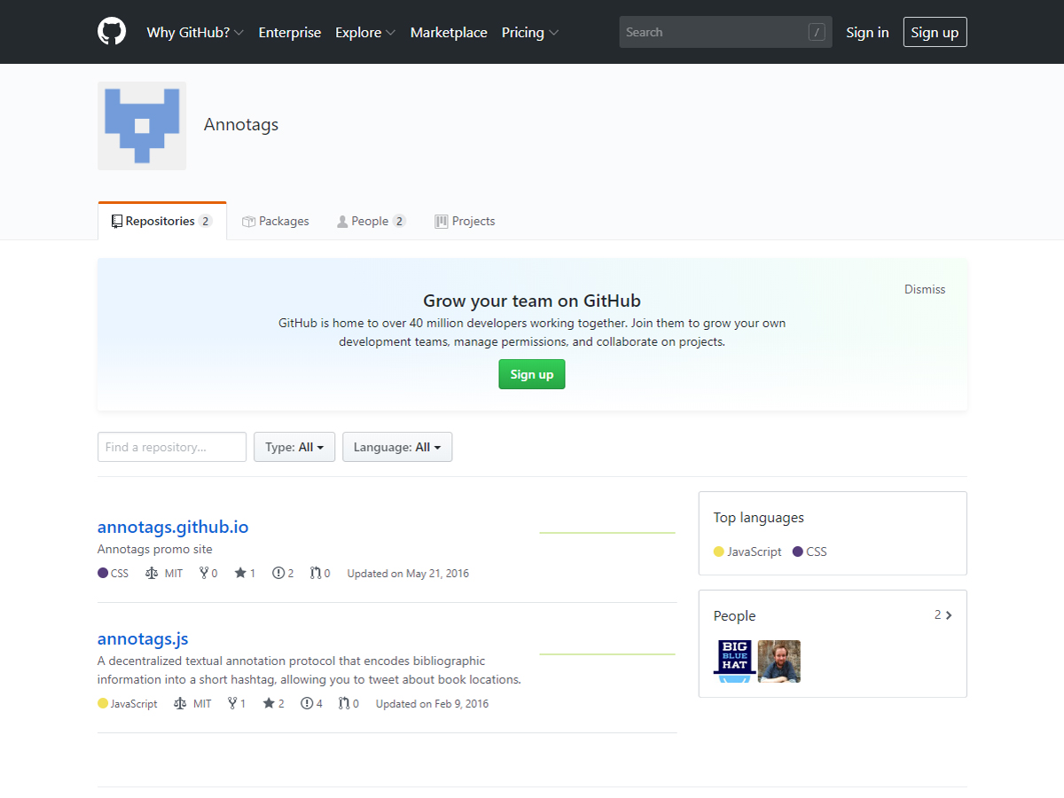 Annotags is a decentralized textual annotation protocol that encodes bibliographic data into a microbloggable textual location hashtag. Related open-source software projects include a web app that transforms ISBNs and other identifiers into hashtags, and a bookmark let that produces hashtags from ebooks and WorldCat entries. A mobile app is in development. Using Annotags, scholars may have discussions in the virtual margins of a text, and literature students may tweet their responses to assigned readings.