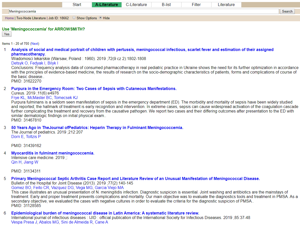 Identify biologically meaningful links between two sets of Medline articles.
