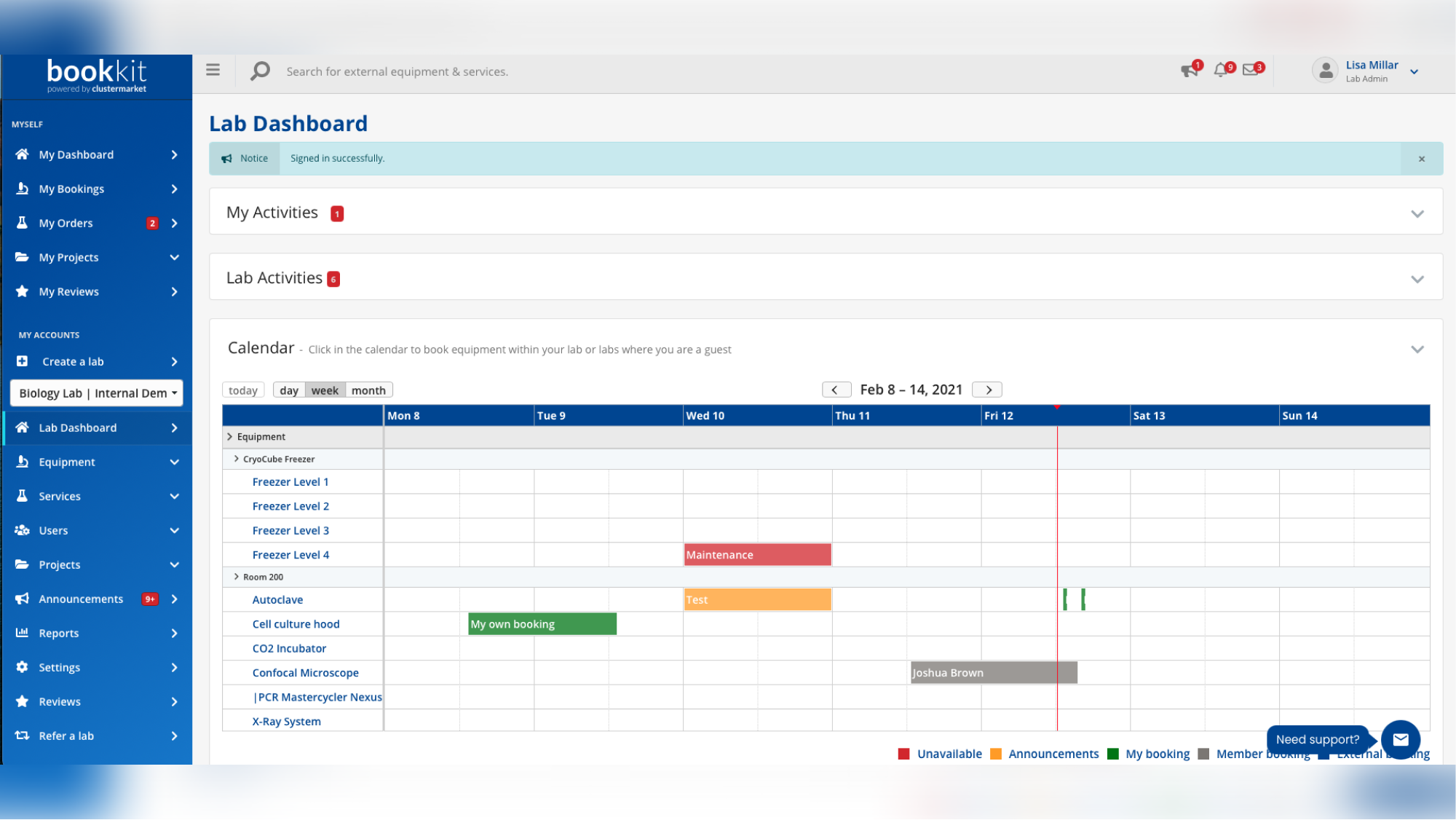 A lab management system that helps to organize equipment and service bookings