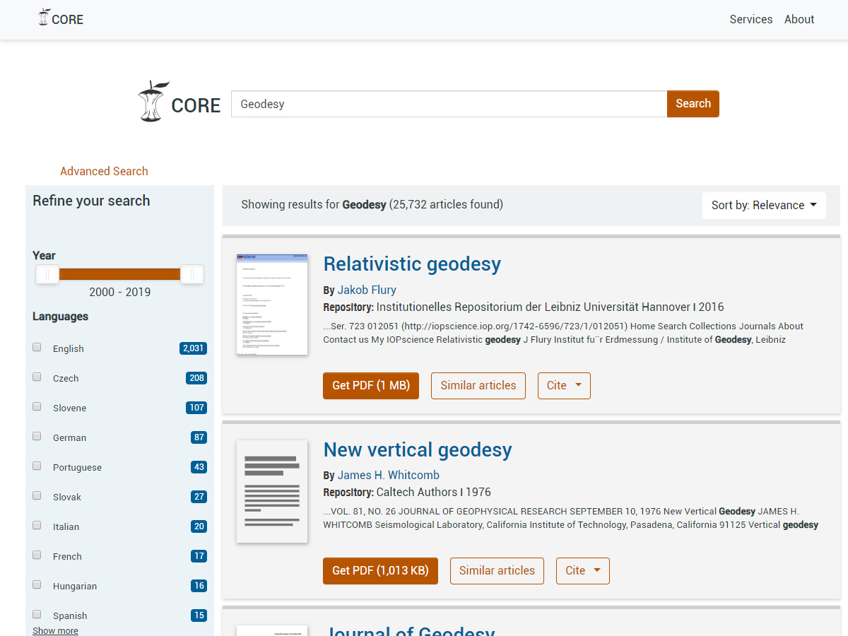 CORE ("COnnecting REpositories") is a service provided by the Knowledge Media Institute, based at The Open University, United Kingdom. The goal of the project is to aggregate all open access content distributed across different systems, such as repositories and open access journals, enrich this content using text mining and data mining, and provide free access to it through a set of services. The CORE project also aims to promote open access to scholarly outputs. CORE works closely with digital libraries and institutional repositories.