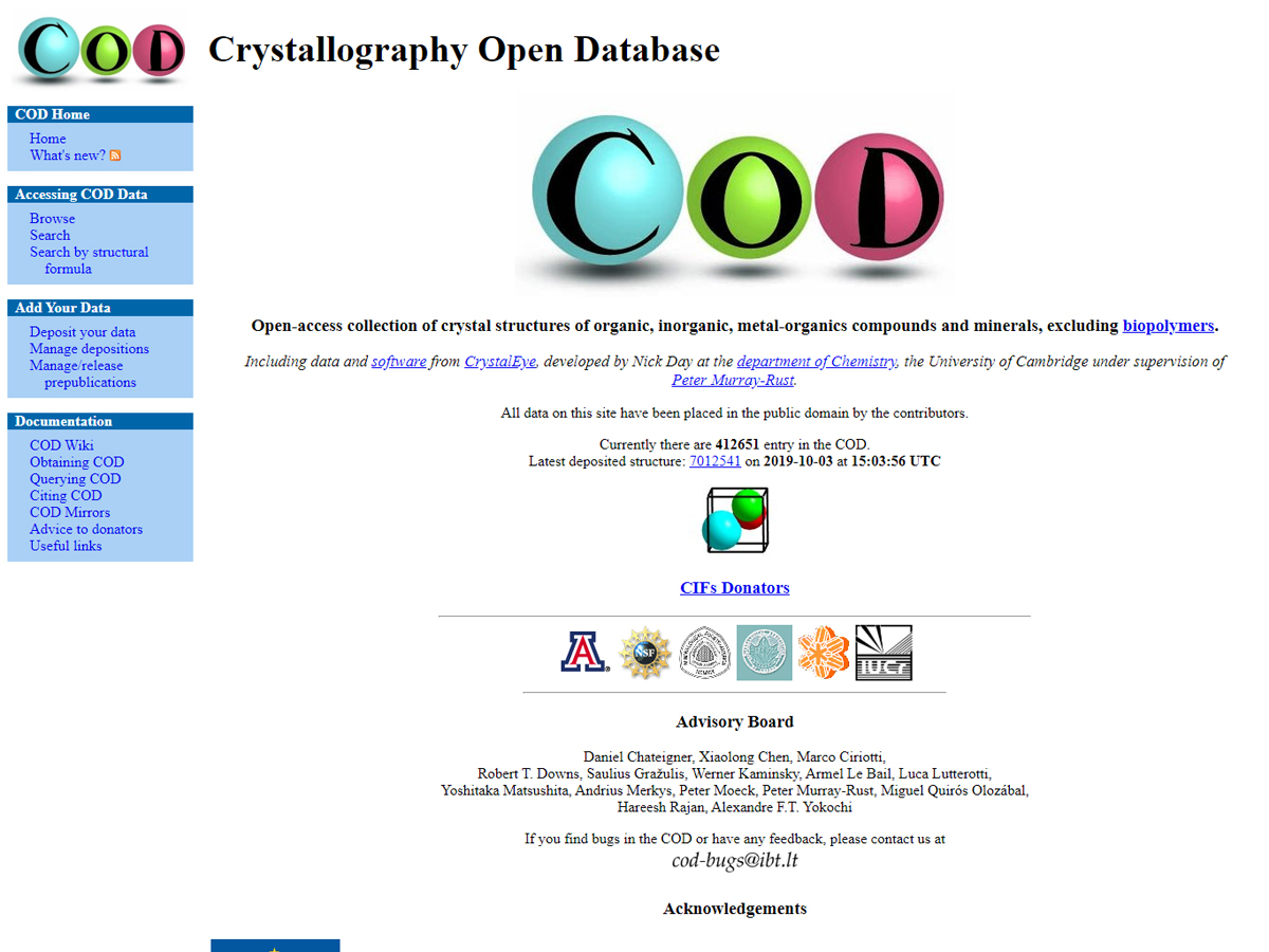 Unlike similar crystallography databases, the database is entirely open-access, with registered users able to contribute published and unpublished structures of small molecules and small to medium sized unit cell crystals to the database. The COD currently contains ∼80 000 entries in crystallographic information file format, with nearly full coverage of the International Union of Crystallography publications, and is growing in size and quality.