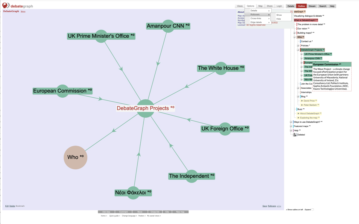 DebateGraph is an award-winning, cloud-based service that offers individuals and communities a powerful way to learn about, and deliberate and decide on, complex issues.
