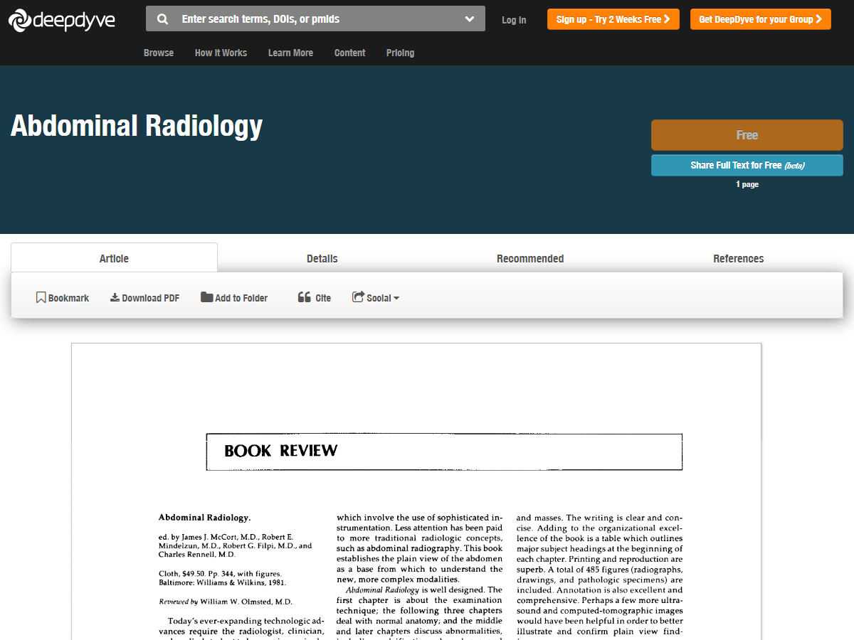 DeepDyve is a commercial website launched in late 2010 that provides access to mainly scientific and scholarly articles from a large range of commercial and non-commercial academic publishers. A novel aspect of DeepDyve's business model is that access is on an affordable, online rental basis for web browser viewing, rather than the conventional buy-and-download access already provided by most academic publishers. In an interview with one of the company founders, the article rental concept is mainly pitched as a way of giving researchers unaffiliated with academic libraries, access to otherwise expensive scholarly articles. Similar to other 'rental' or online access services such as Spotify and Netflix, DeepDyve charges a monthly or annual subscription.