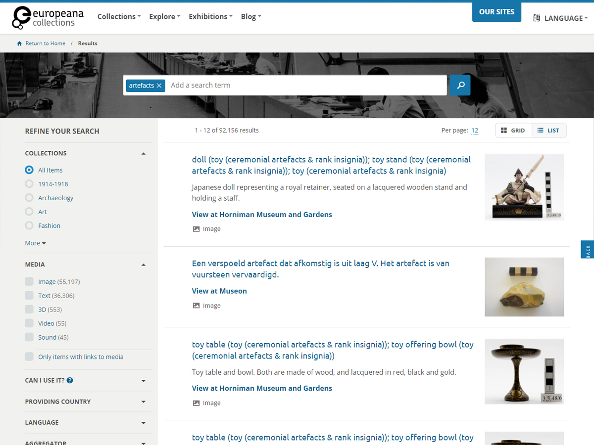Europeana Collections provides access to over 50 million digitised items – books, music, artworks, and more – with sophisticated search and filter tools to help you find what you’re looking for. The dedicated thematic collections on art, fashion, music, photography, and World War I contain galleries, blogs, and exhibitions to inform and inspire.