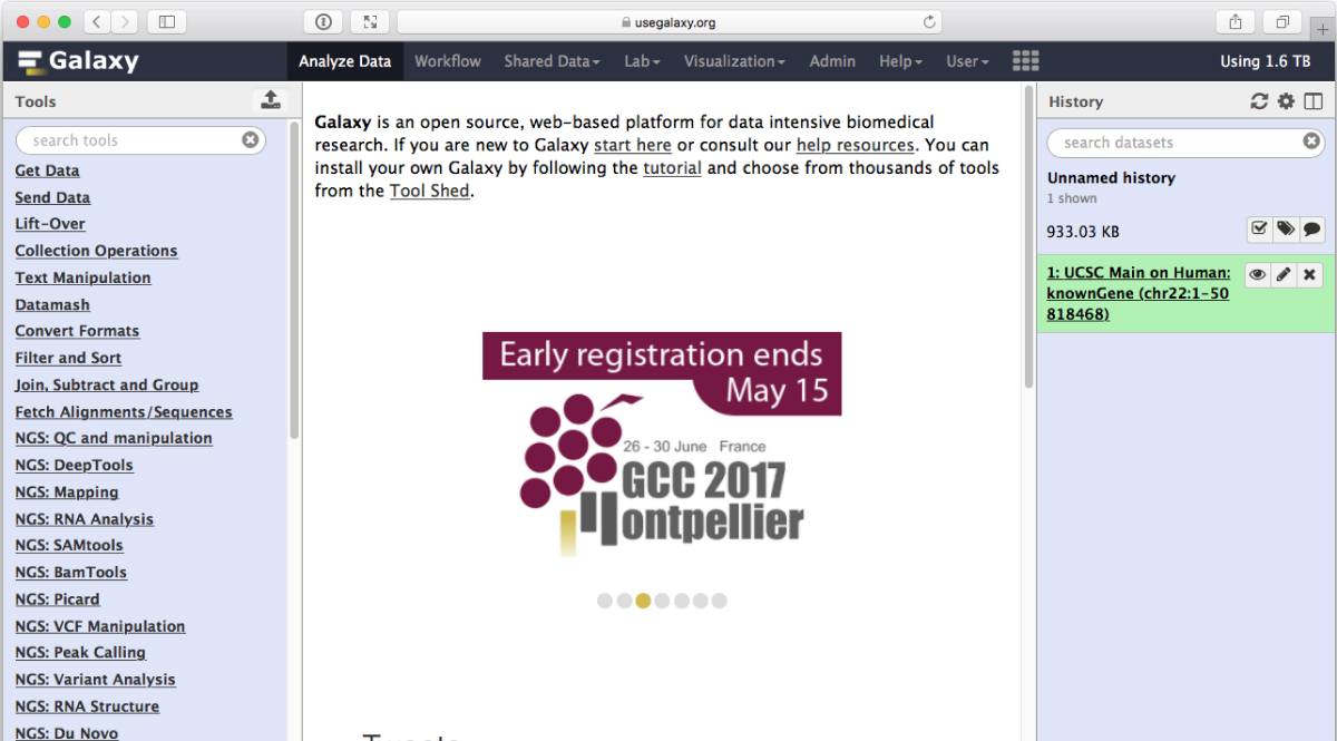 Galaxy is a scientific workflow, data integration, and data and analysis persistence and publishing platform that aims to make computational biology accessible to research scientists that do not have computer programming or systems administration experience. Although it was initially developed for genomics research, it is largely domain agnostic and is now used as a general bioinformatics workflow management system.