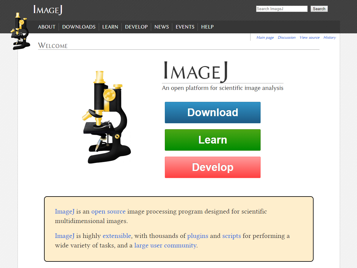 Java-based image processing program with a wide range of plugins, including for 3D live-cell imaging, radiological image processing, multiple imaging system data comparisons, and automated hematology systems.