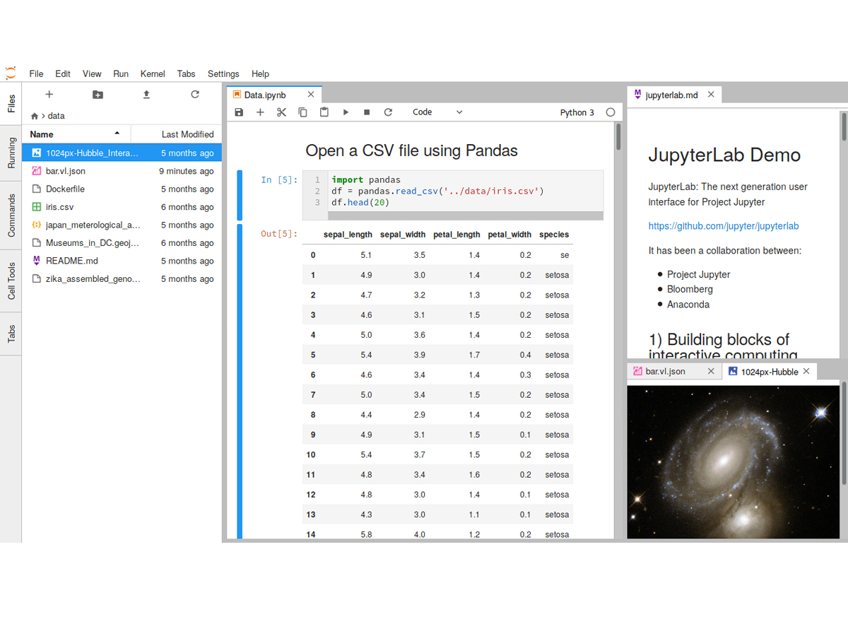 Jupyter Notebook (formerly IPython Notebook) is a free and open-source interactive web tool known as a computational notebook, which researchers can combine code execution, computational output, explanatory text and multimedia resources in a single document. It is a powerful way to write and iterate on your Python code for data analysis. According to co-founder Fernando Pérez, the name was created to the three programming languages which are Julia (Ju), Python (Py) and R.