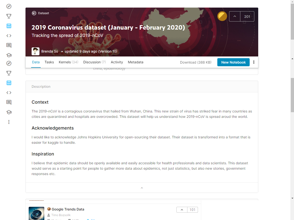 Kaggle is an online community of data scientists and machine learners, owned by Google, Inc. Kaggle allows users to find and publish data sets, explore and build models in a web-based data-science environment, work with other data scientists and machine learning engineers, and enter competitions to solve data science challenges. Kaggle got its start by offering machine learning competitions and now also offers a public data platform, a cloud-based workbench for data science.