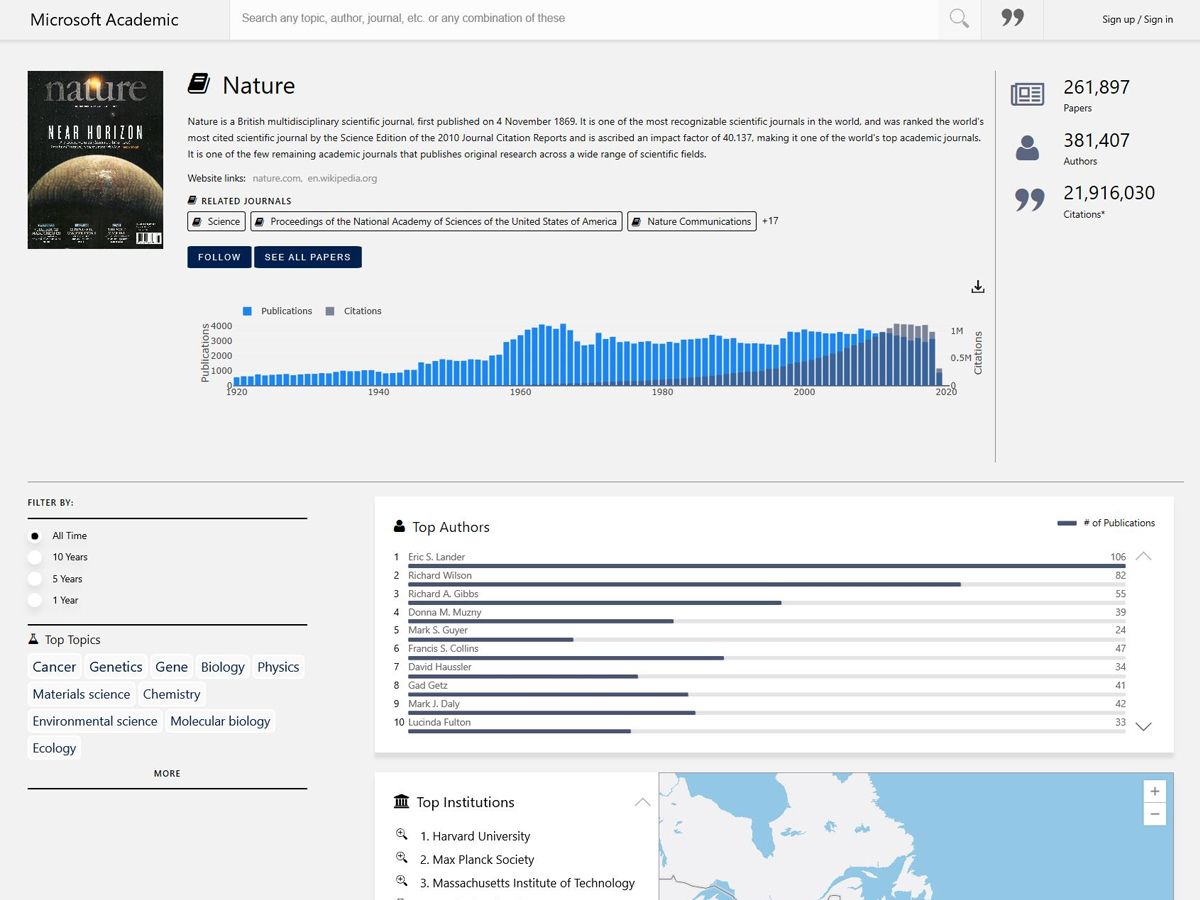 A search engine that provides many innovative ways to explore academic publications, authors, conferences, journals, organizations, and keywords; connecting millions of scholars, students, librarians, and other users.