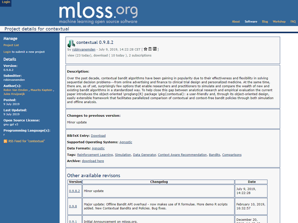 Our goal is to support a community creating a comprehensive open source machine learning environment. Ultimately, open source machine learning software should be able to compete with existing commercial closed source solutions. To this end, it is not enough to bring existing and freshly developed toolboxes and algorithmic implementations to people's attention. More importantly the MLOSS platform will facilitate collaborations with the goal of creating a set of tools that work with one another. Far from requiring integration into a single package, we believe that this kind of interoperability can also be achieved in a collaborative manner, which is especially suited to open source software development practices.