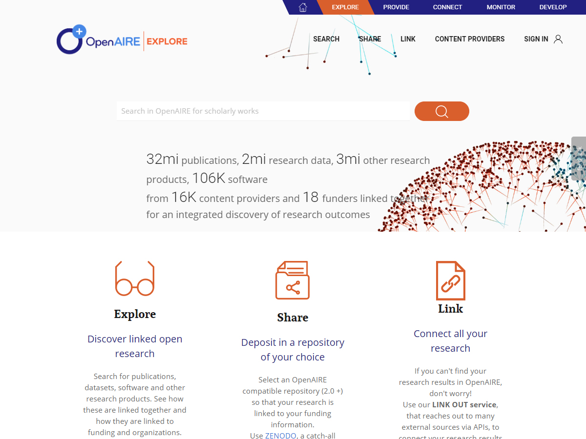 OpenAIRE is a pan-European research information system, which provides services to find, store, link, and analyze research output from all disciplines. It aims at promoting and implementing the directives of the European Commission (EC) and the European Research Council on the promotion and funding of science and research. OpenAIRE supports the Open Access Mandate and the Open Research Data Pilot. By initialising the OpenAIRE portal in 2010, it became possible for the first time to document EU-funded projects and their academic output in their entirety and present them to the public. Another important step was the establishment of the European repository, ZENODO, in cooperation with the European Council for Nuclear Research, CERN. This repository is available to academics as an all-round repository.