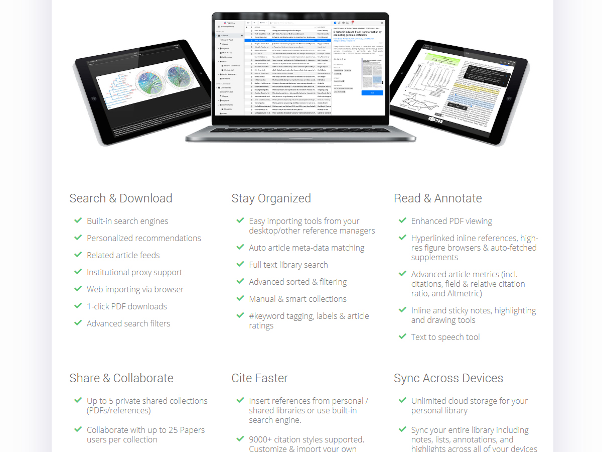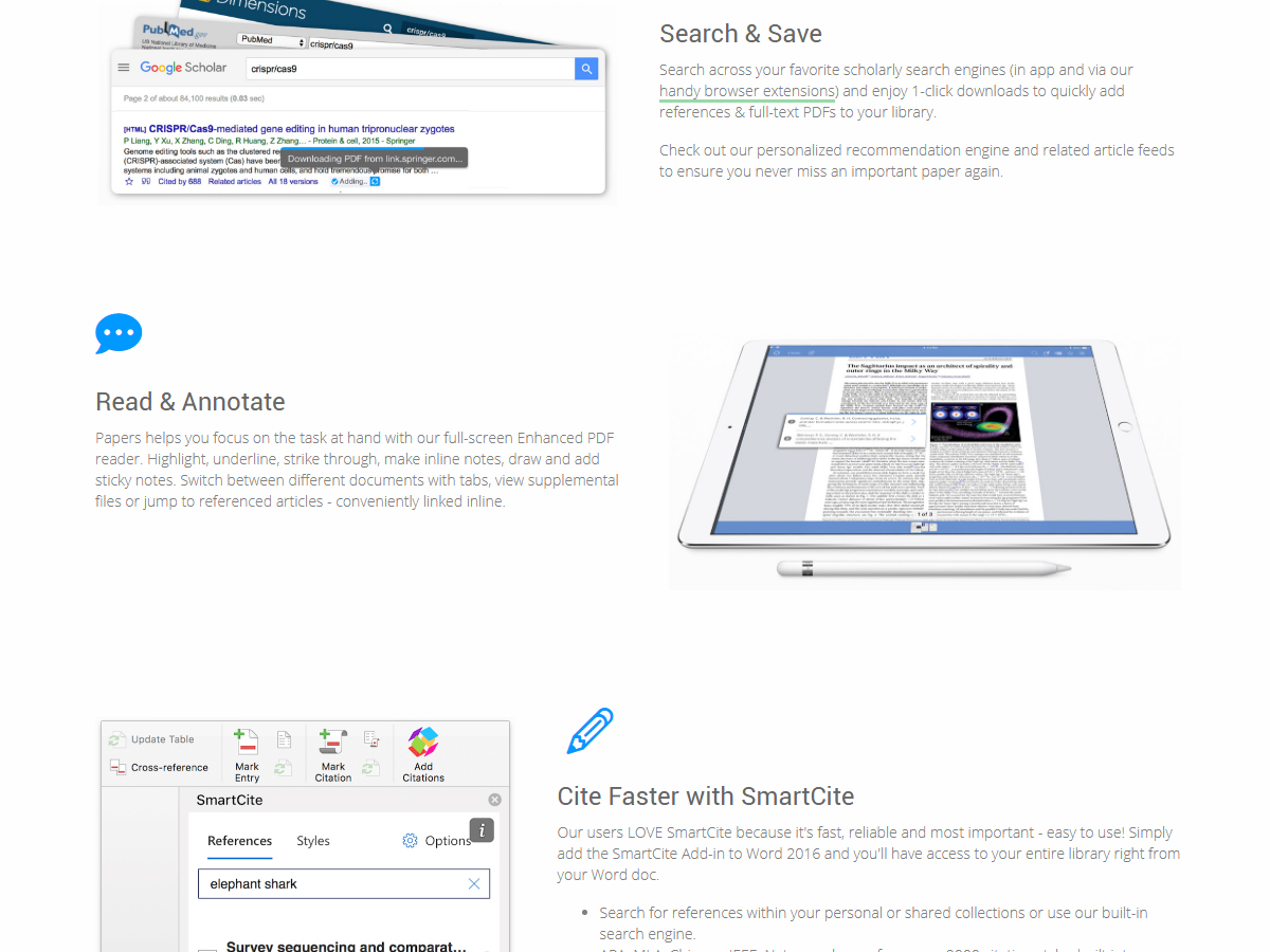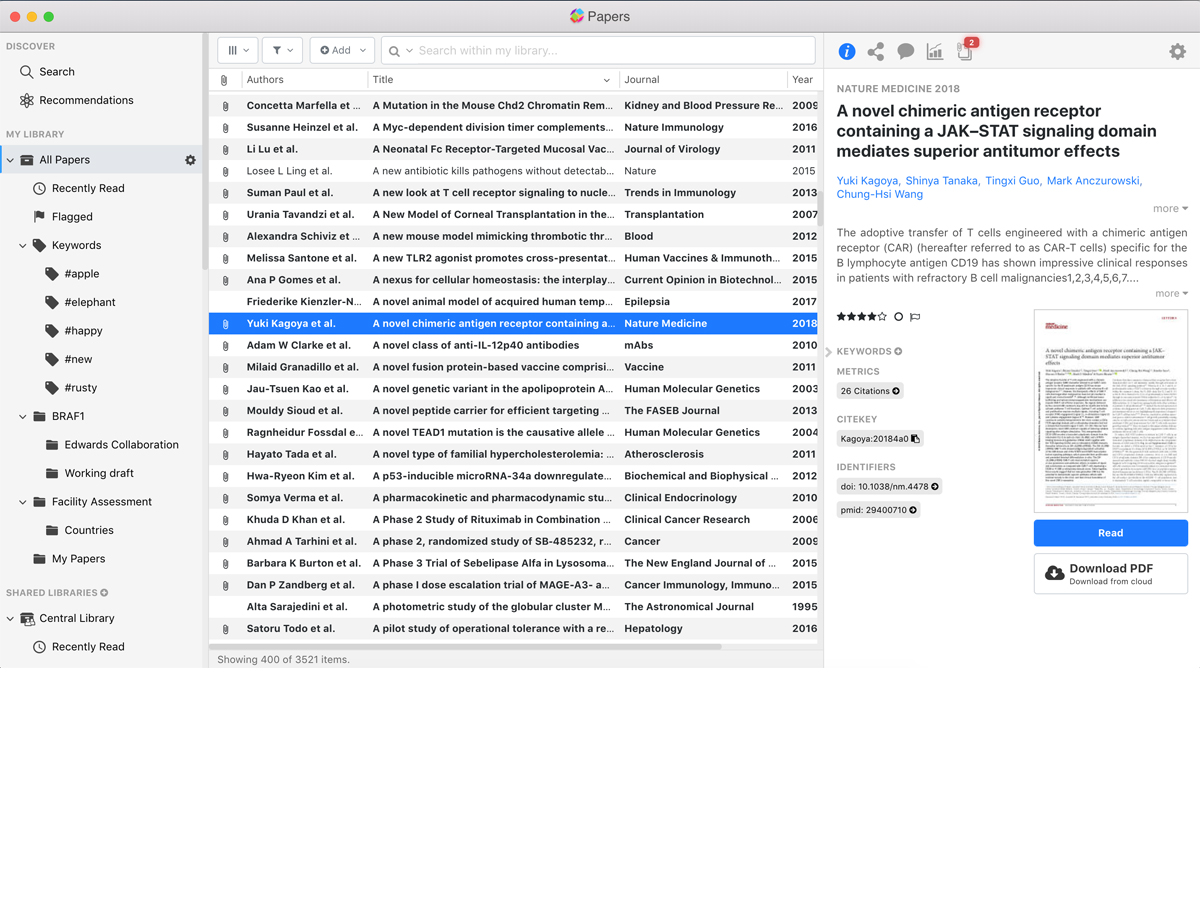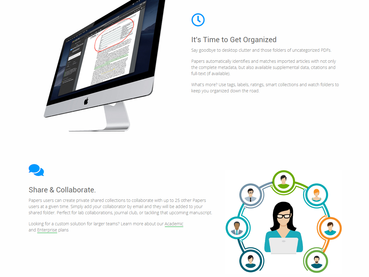 Papers is a reference management software for Mac OS X and Windows, used to manage bibliographies and references when writing essays and articles. It is primarily used to organize references and maintain a library of PDF documents and also provides a uniform interface for document repository searches, metadata editing, full-screen reading and a variety of ways to import and export documents. Papers was developed by Alexander Griekspoor and Tom Groothuis while studying towards their Ph.D.s at the Netherlands Cancer Institute. Faced with working with hundreds of digital publications in PDF format, the pair worked on Papers to provide an iTunes-like approach to document management.