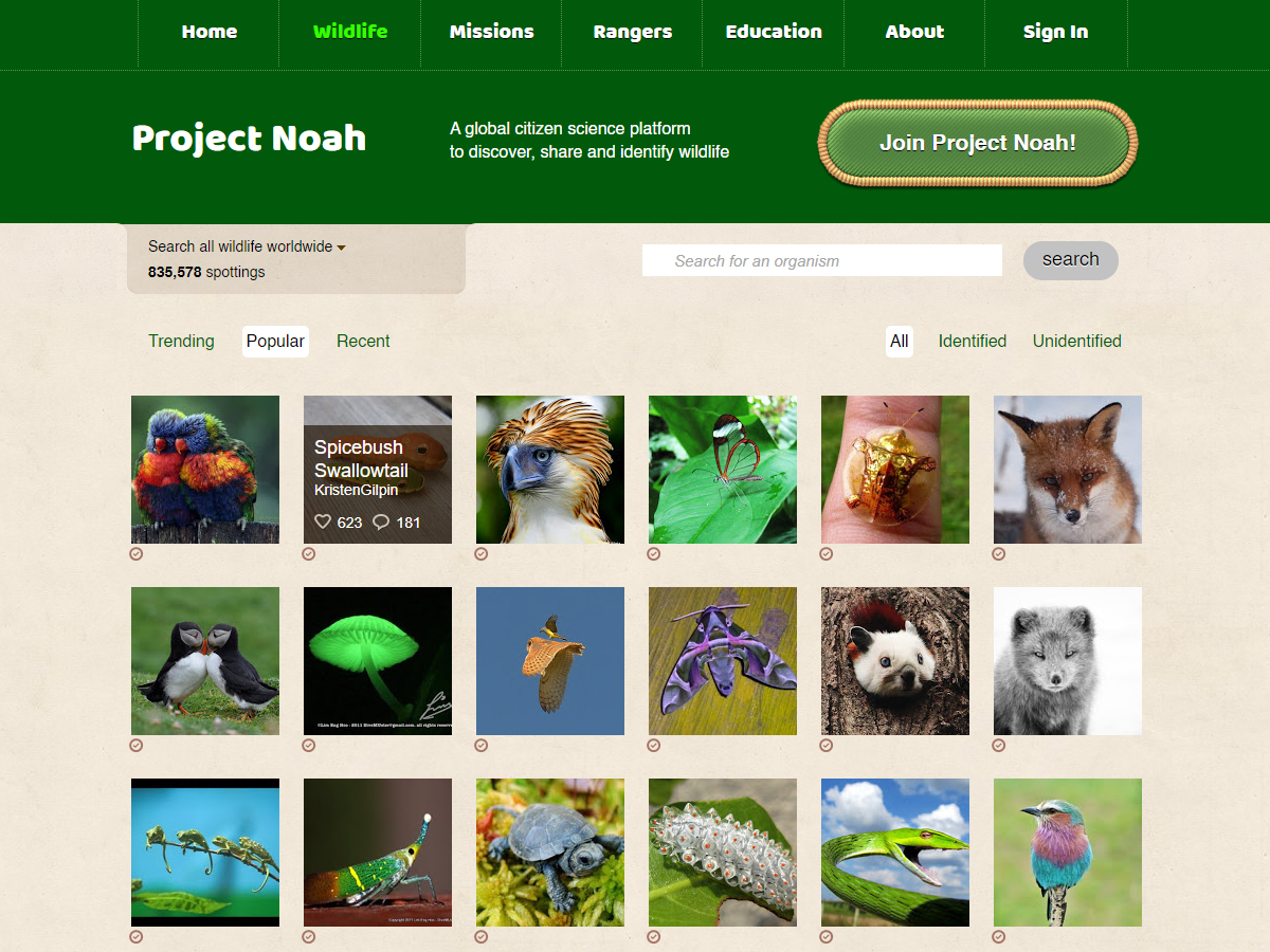 The Project Noah allows you to explore, document local wildlife, and discover the nature around you. Anyone can add their observations to a growing database for use by ongoing citizen-science projects. Project Noah builds a powerful force for crowdsourcing ecological data collection and strengthening wildlife awareness and preservation.