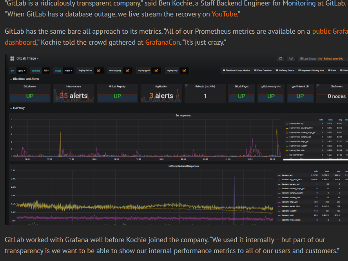Grafana Labs helps users get the most out of Grafana, enabling them to take control of their unified monitoring, and avoid vendor lock and the spiraling costs of closed solutions. Works with for Graphite, InfluxDB, Prometheus, & more.