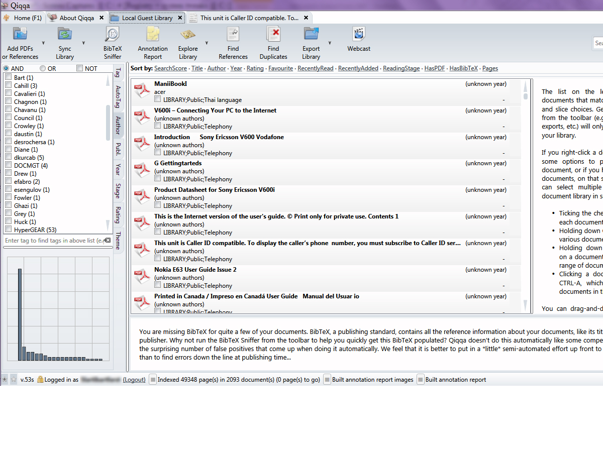 Qiqqa is a useful application designed to manage all your PDF documents by using tags and metadata that make searching for documents on your computer a lot easier. If you usually work with high volumes of data, especially doing research, and if you save endless PDF documents, Qiqqa can be really helpful. The program's interface has five tabs in which you can find all its features: PDF library, concept map editor, an expedition feature to find new concepts, a web browser, and one tab that includes several tools such as a DOC to PDF converter that can create safety copies. Qiqqa can scan all your documents and read the text in order to look for concepts and information, like the author, title, and keywords. Inside this PDF library, you can add notes and tags in order to search faster.