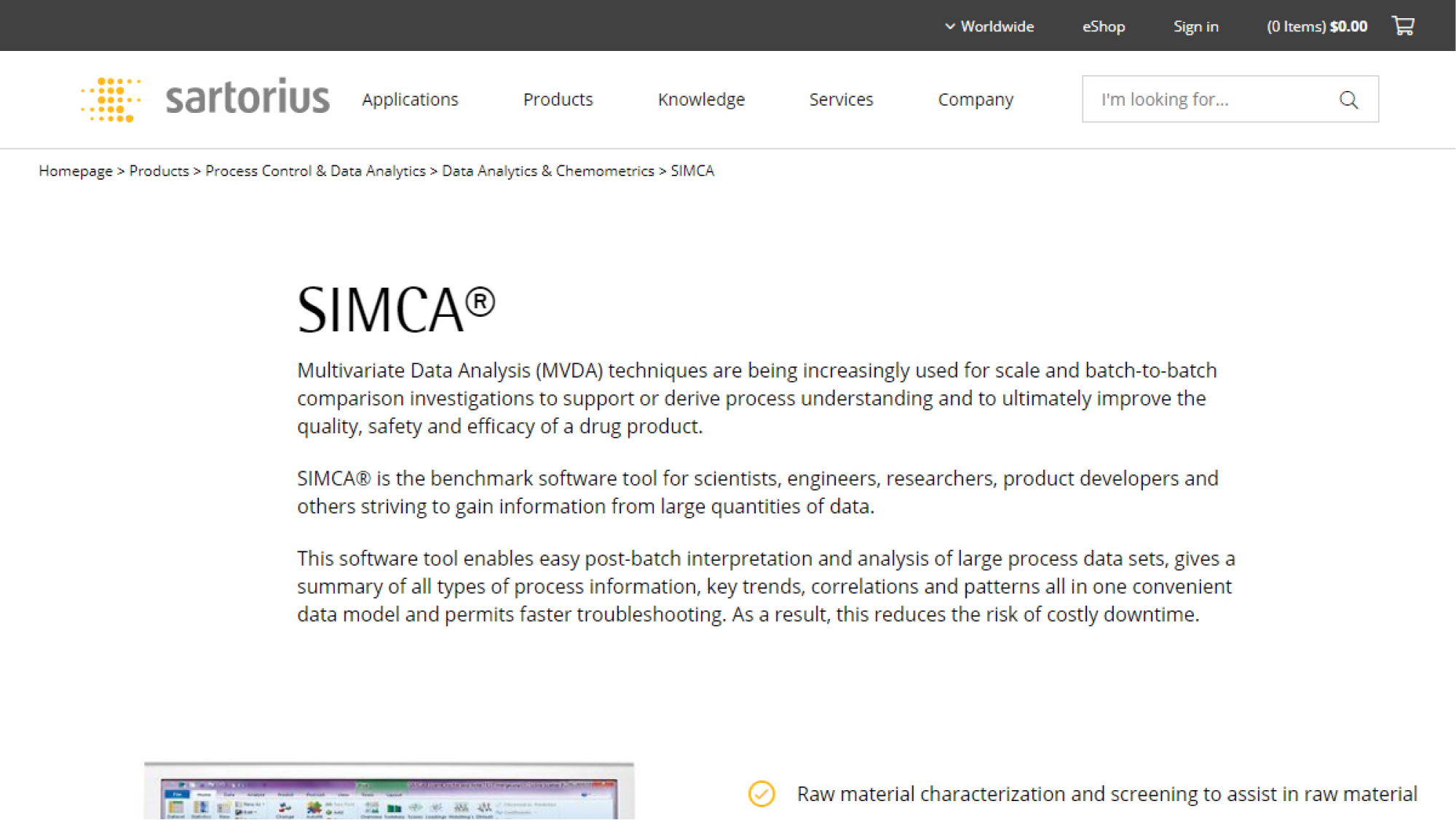 SIMCA is an easy to use software for multivariate data analytics, tailored to experts like process engineers, lab heads, but also technicians and plant operators. Among the main features are modelling (PLS and PCA) methods for continuous and batch processes incl. process monitoring. It mainly relies on robust, industry proven, linear methods.