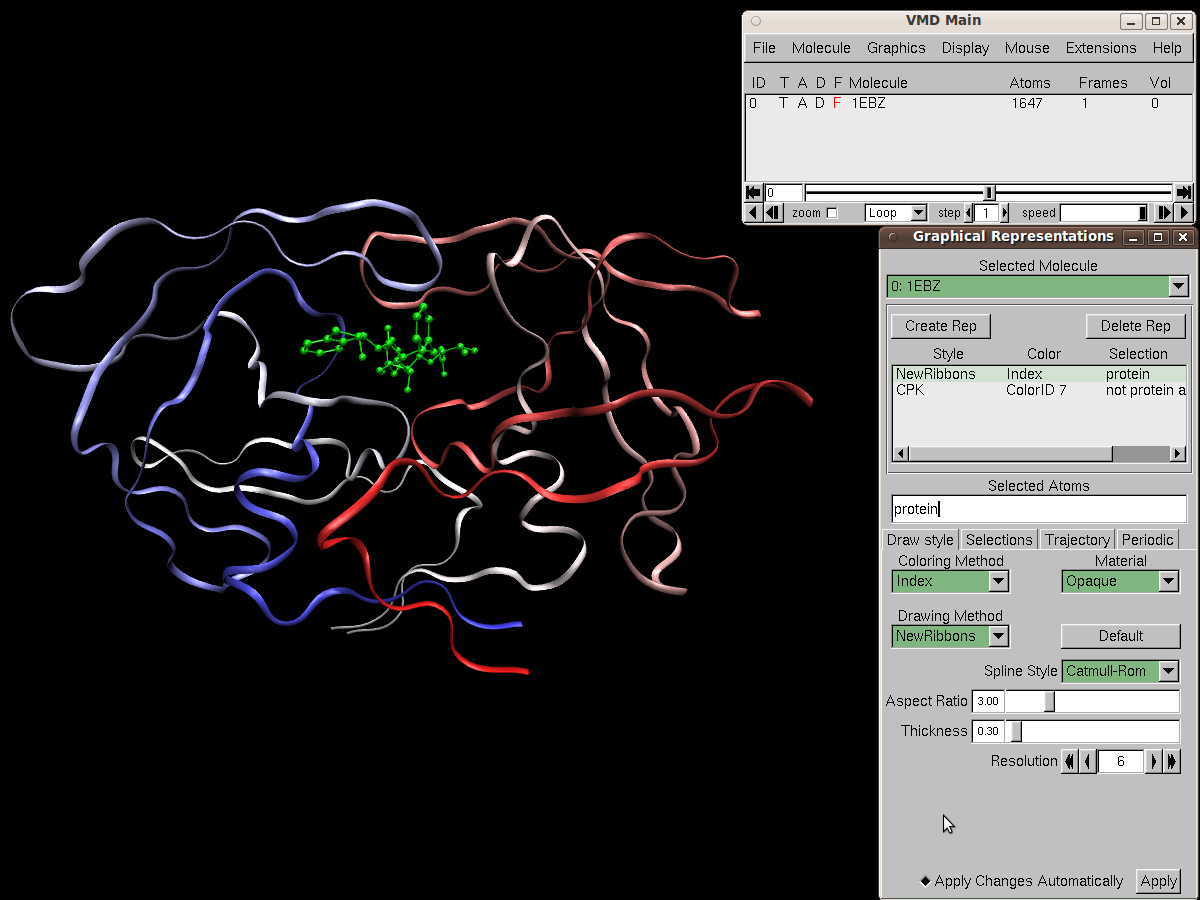 VMD is developed as mainly a tool to view and analyze the results of molecular dynamics simulations. It also includes tools for working with volumetric data, sequence data, and arbitrary graphics objects. Molecular scenes can be exported to external rendering tools such as POV-Ray, RenderMan, Tachyon, Virtual Reality Modeling Language (VRML), and many others. Users can run their own Tcl and Python scripts within VMD as it includes embedded Tcl and Python interpreters. VMD runs on Unix, Apple Mac macOS, and Microsoft Windows. VMD is available to non-commercial users under a distribution-specific license which permits both uses of the program and modification of its source code, at no charge.